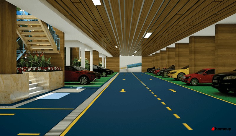 Bãi đỗ xe thông minh, khu tầng hầm rộng 5.181,5m2, với diện tích mỗi căn hộ đủ chứa 2 xe ô tô và 6 xe máy. Một số căn hộ còn có tầng hầm riêng thiết kế hiện đại, giúp tối ưu nhu cầu gửi xe và đảm bảo an toàn cho cư dân, vượt trội hơn nhiều dự án chung cư khác cùng khu vực.